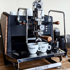 - Preparación automatizada: Vostok One Group cuenta con un sistema innovador de dosificación que casi automatiza completamente la fase de infusión. Después de bajar la palanca, comienza la preinfusión, y la máquina se encarga de asegurar que solo la cantidad correcta de café llegue a la taza.
