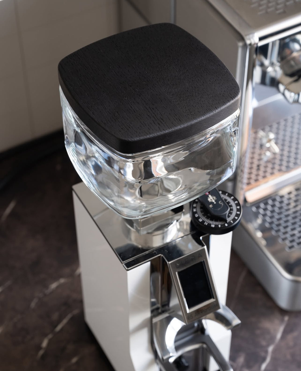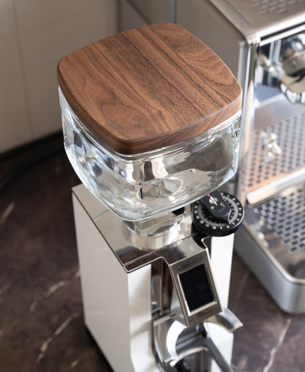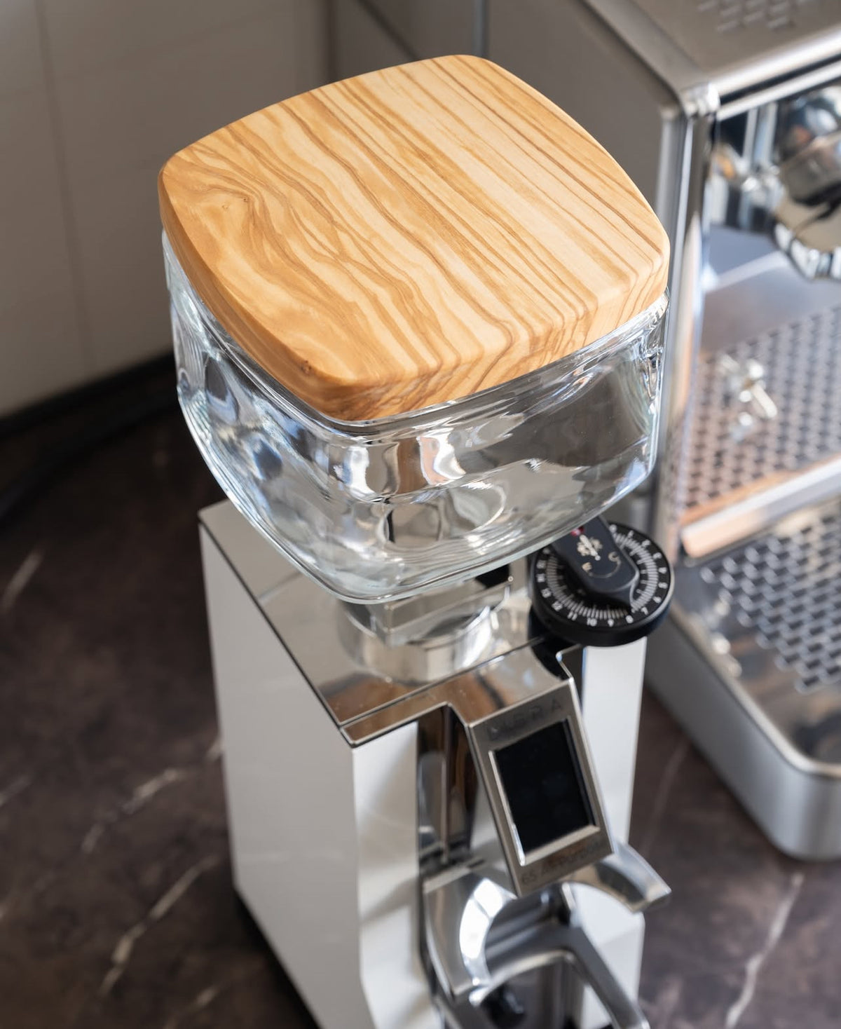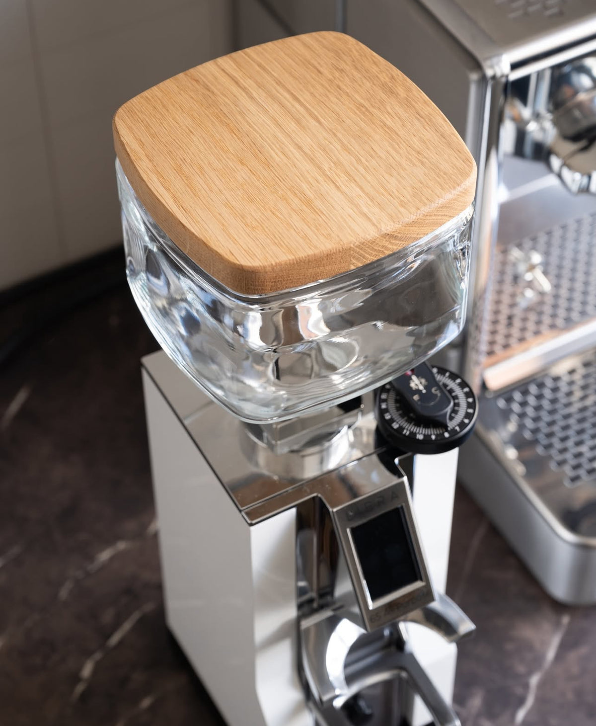 Esta tapa de madera maciza hecha a mano está hecha a medida para Eureka Recipiente de vidrio Mignon de 500 g. Una forma sencilla pero elegante de realzar la textura y la apariencia de tu molinillo de café: perfecto para quienes aprecian los materiales con alma.