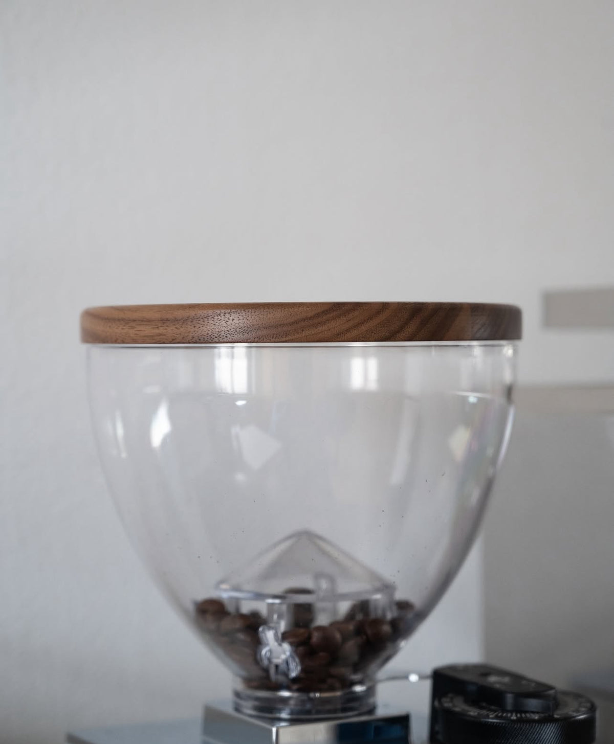 Mejore tanto el aspecto como la sensación de su rincón de café con una tapa de madera hecha a mano de Wiedemann Fabricado. Diseñado específicamente para el envase redondo de 350 g incluido. Eureka Mignon Libra – Esta gorra combina funcionalidad con una expresión cálida y natural.
