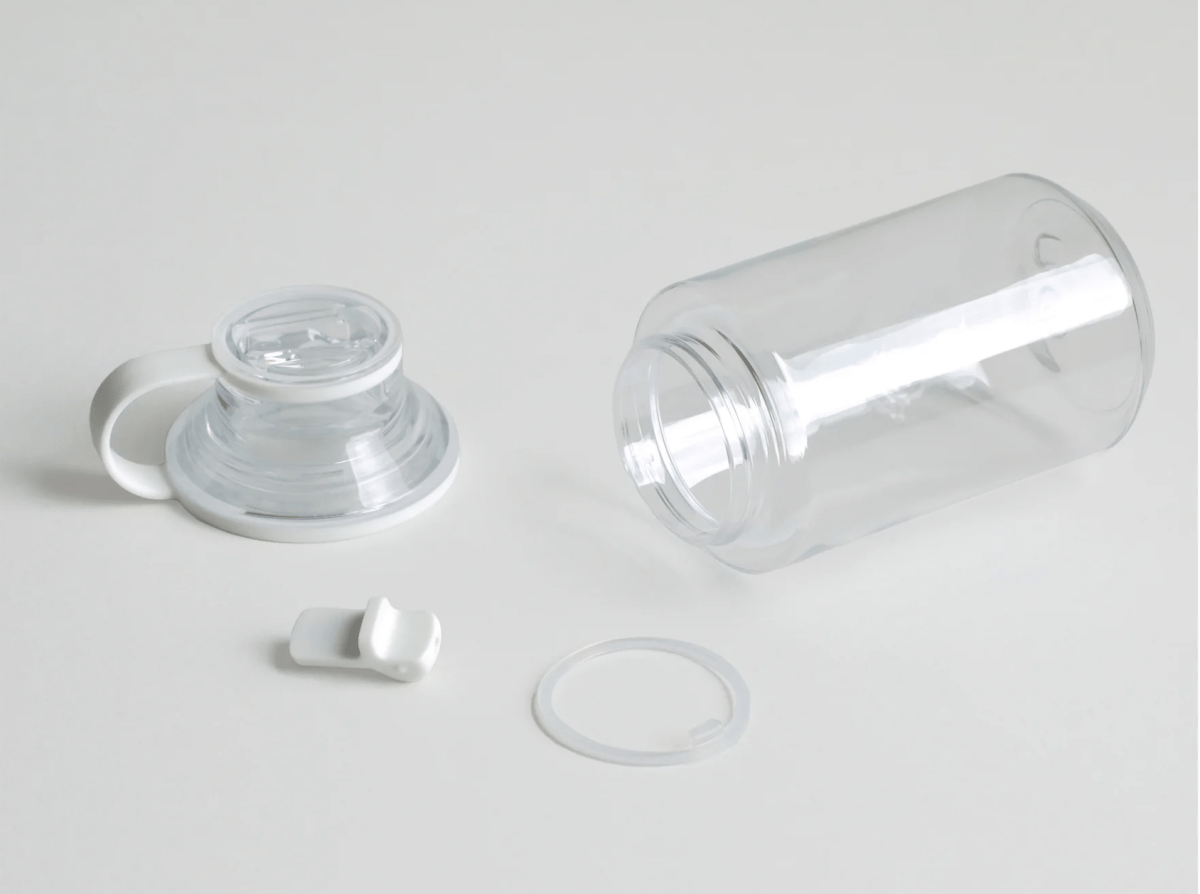 - Botella y tapa fabricadas en copoliéster que soporta hasta 80°C