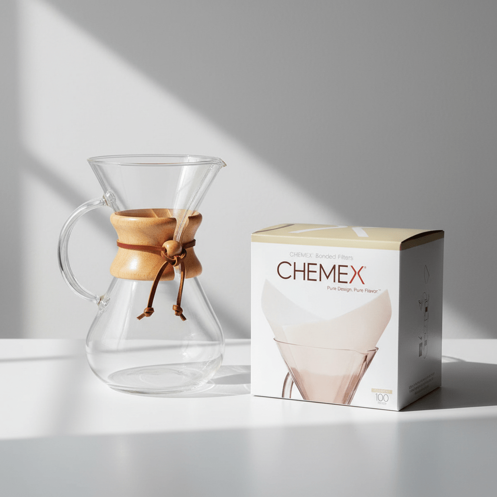 Este paquete contiene todo lo que necesitas para comenzar con el método Chemex, una de las formas más apreciadas de preparar café.