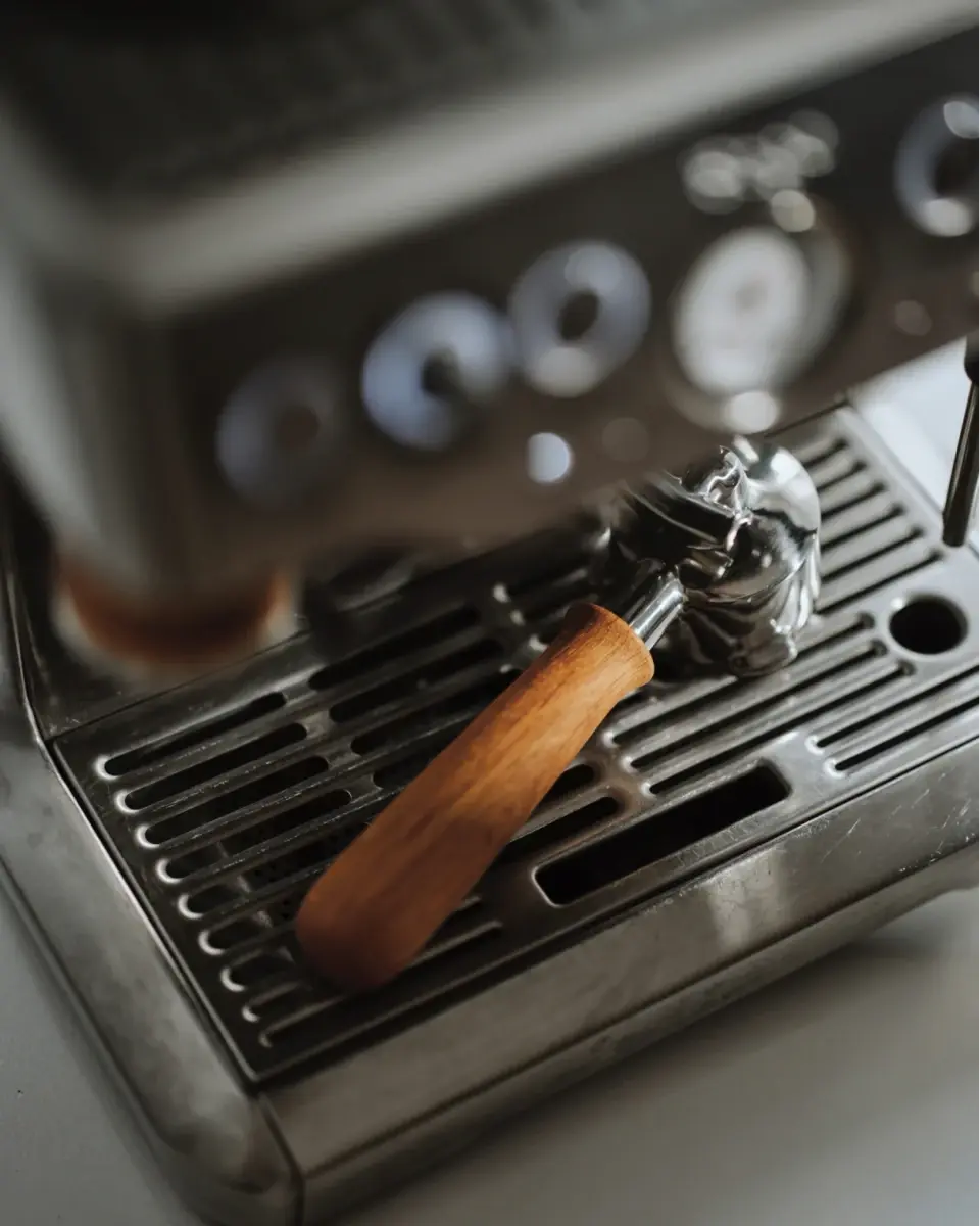 | Tapa para el portafiltro de café | Mango ergonómico de madera para mejor sensación y control |