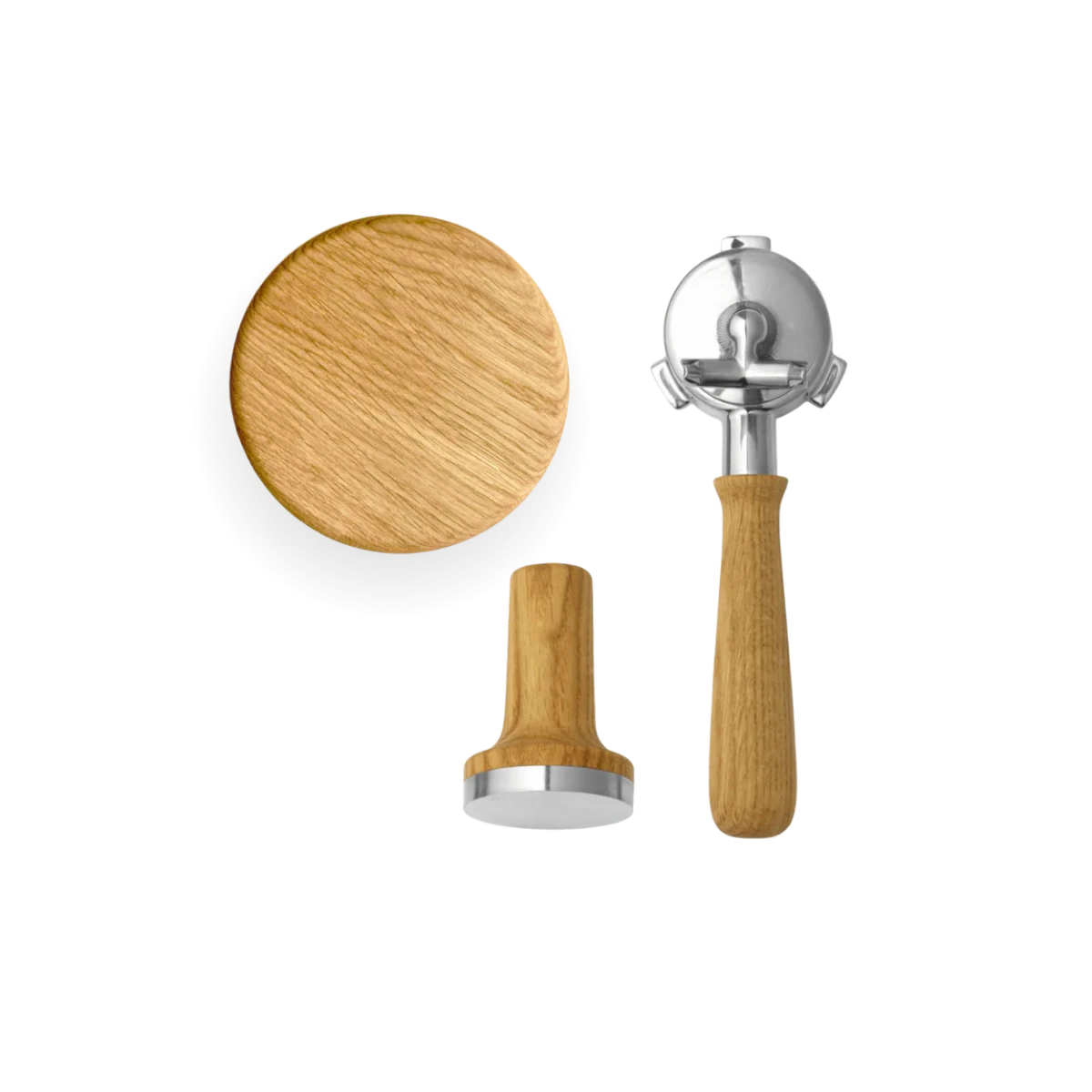 Juego de mangos para Sage Barista Express, Pro & Touch es una mejora pensada para quienes desean darle a su máquina una mejor sensación y una expresión más refinada. Este set combina madera hecha a mano, fabricación danesa y detalles funcionales para una rutina de preparación más inspiradora en casa. Para quienes buscan accesorios para máquinas de espresso con una clara sensación premium, esta es una elección que se nota cada día. Además, obtienes un prensador para espresso con ajuste exacto que mejora el flujo de trabajo en cada shot.
