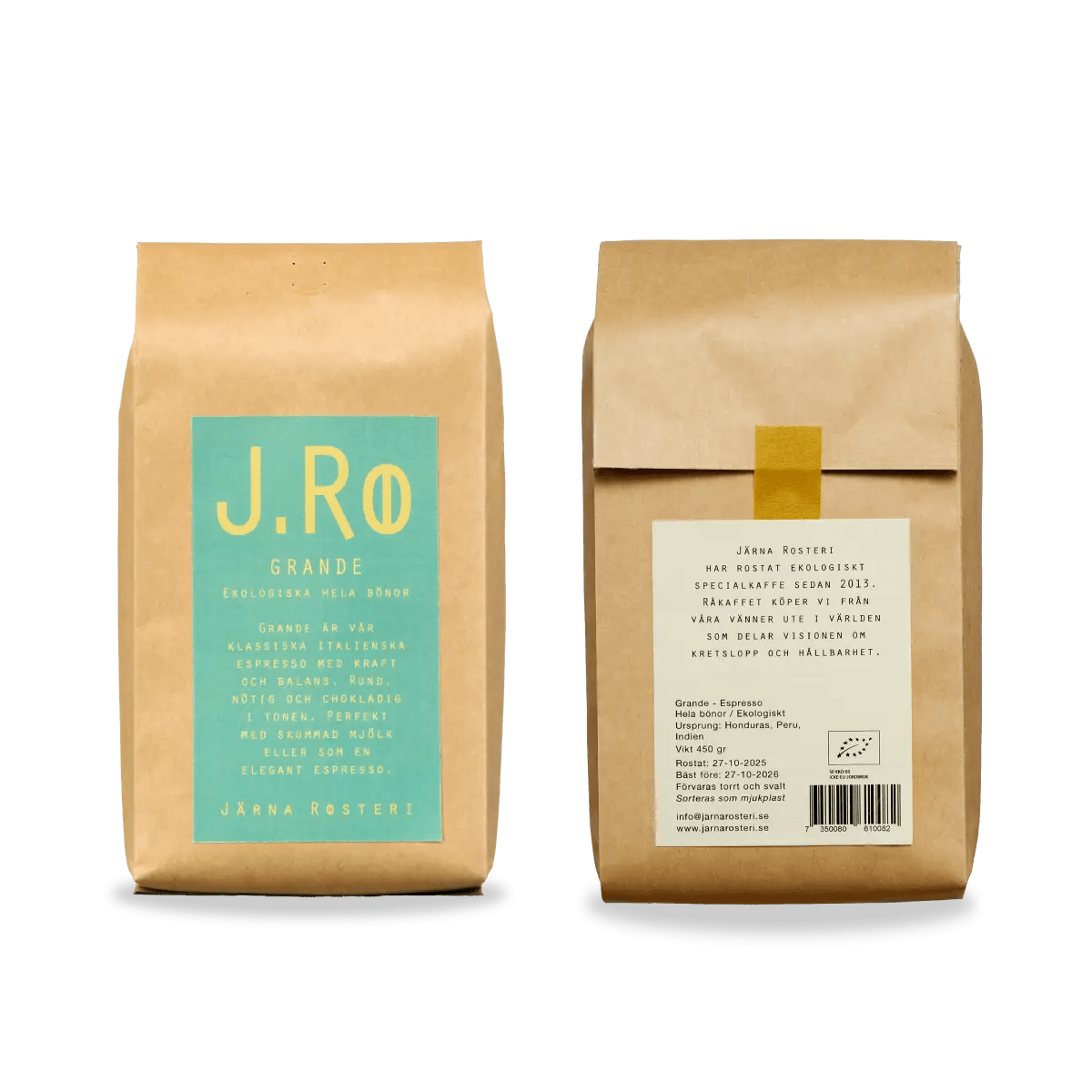 Espresso Grande es una mezcla clásica italiana de espresso ecológica con un sabor profundo y armonioso. Los granos provienen de India, Perú y México.