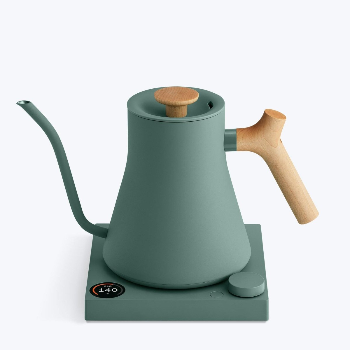 Fellow Stagg EKG El Pro de 0.9L en un elegante color verde es un hervidor eléctrico premium diseñado para los amantes del café que valoran la precisión y el control. Con tecnología moderna, ofrece ajustes precisos de temperatura y un modo de espera ajustable para mejorar su experiencia de preparación.
