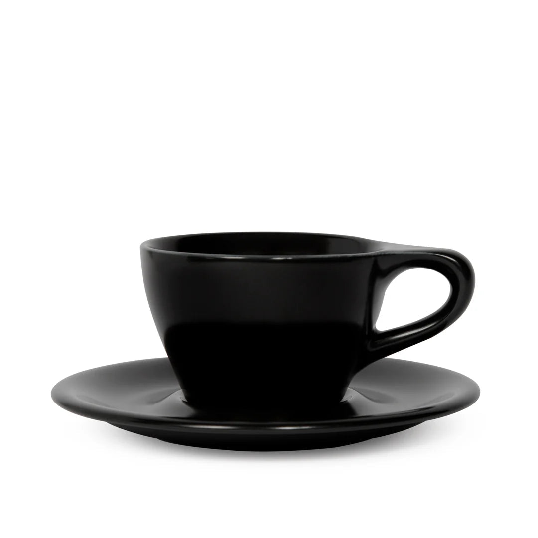 Taza de cappuccino aprobada por baristas en porcelana mate negra. Diseñada junto con baristas galardonados para un flujo óptimo de leche, arte latte perfecto y una sensación profesional en cada taza.