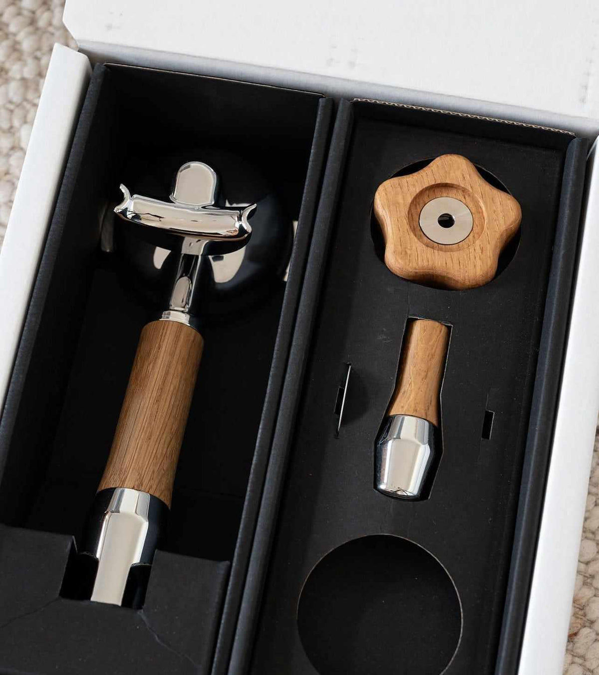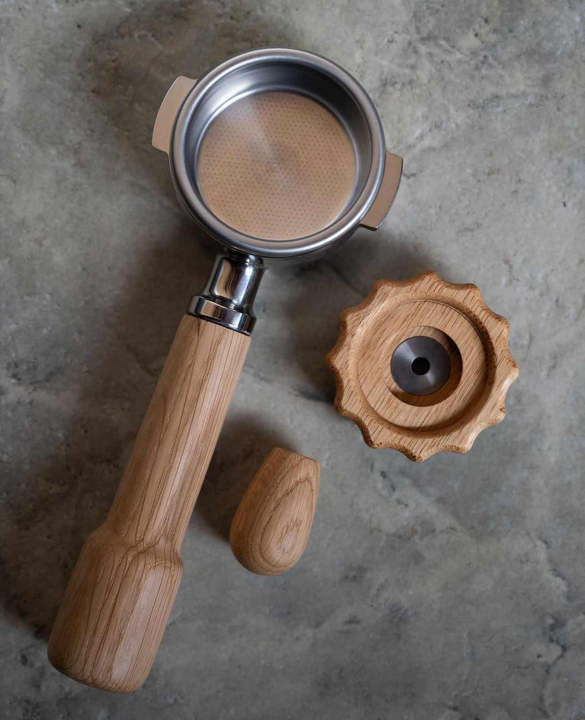 Elija entre cuatro maderas cuidadosamente seleccionadas: olivo, nogal, roble y roble oscuro – todas de fuentes sostenibles y tratadas con aceite duro orgánico que resalta el carácter y la sensación natural de la madera. El diseño inspirado en La Marzocco combina robustez y elegancia en un equilibrio armónico, haciendo que este mango sea tan funcional como visualmente atractivo.