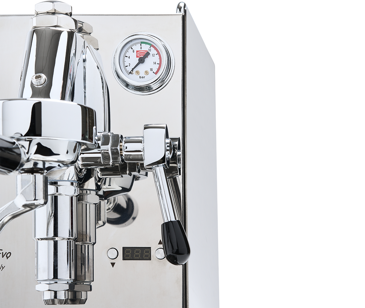 El grupo de preparación de Quick Mill con mushroom de acero inoxidable contribuye a una buena estabilidad térmica y larga durabilidad. Esto ofrece un shot más consistente y una construcción robusta que soporta muchos años de uso diario.
