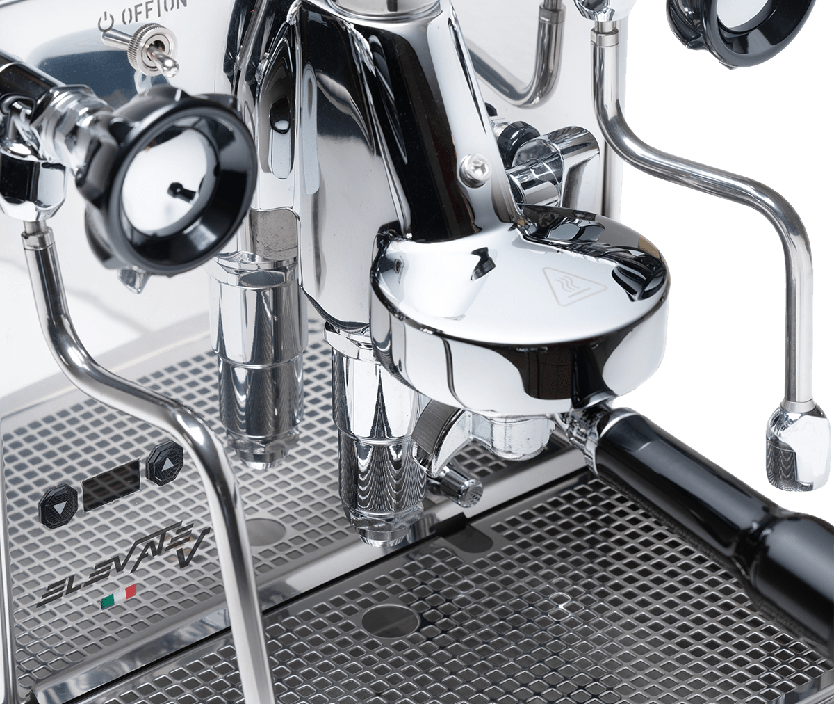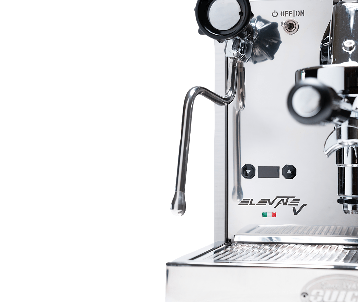 Elevate V está equipada con las exclusivas válvulas ergonómicas de Quick Mill y varillas antiquemaduras — perfectas para espumar leche y un manejo más seguro.