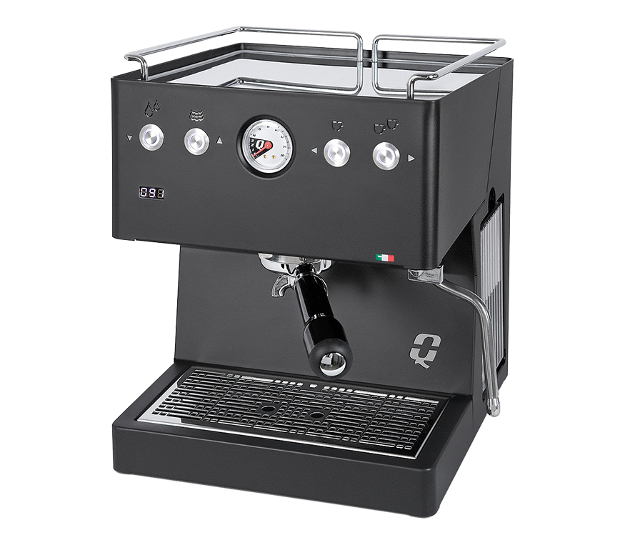 Material: Acero inoxidable; disponible en acero, negro mate y blanco; grupo de café Quick Mill con junta tórica; varilla de vapor antiquemaduras