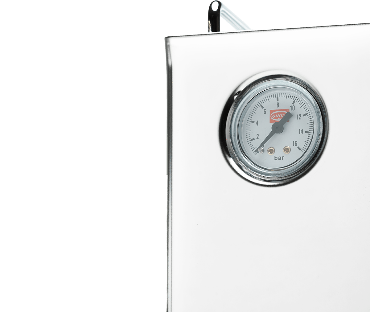 El manómetro integrado (0–16 bar) muestra la presión de extracción en tiempo real y te ayuda a ajustar la molienda, la dosificación y el prensado para un shot óptimo.