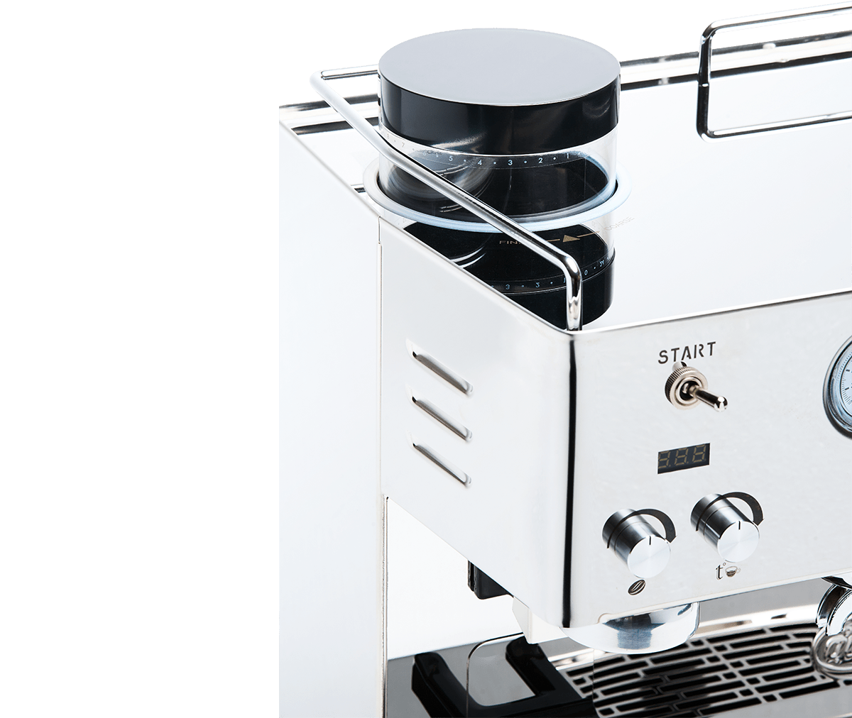 Material: Acero inoxidable completo; grupo de preparación Quick Mill con junta tórica; varilla de vapor anti-quemaduras con aerador