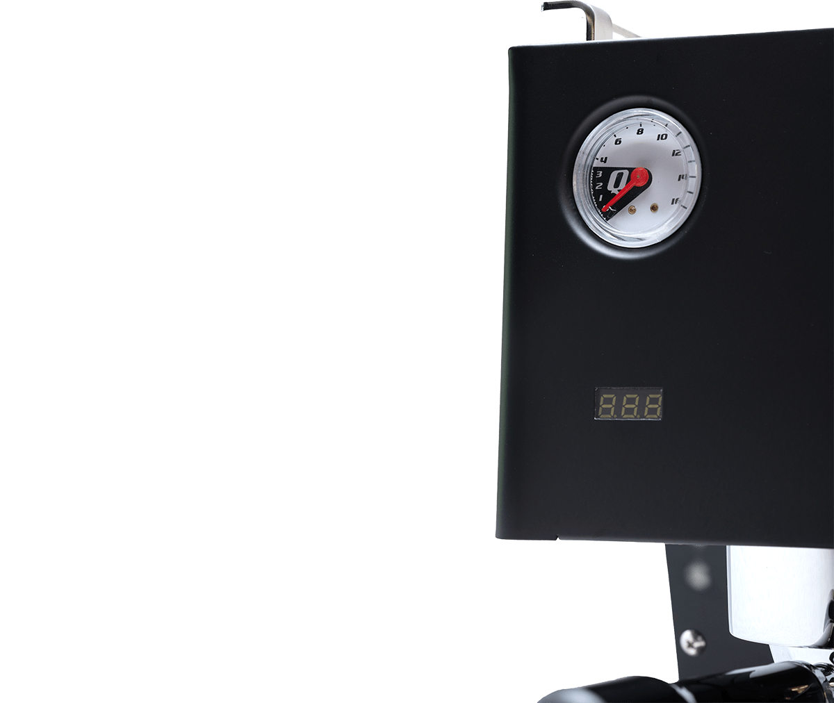 Con manómetros para la presión de la bomba y del calderín, ves exactamente cómo trabaja la máquina y cómo tus ajustes afectan la extracción.