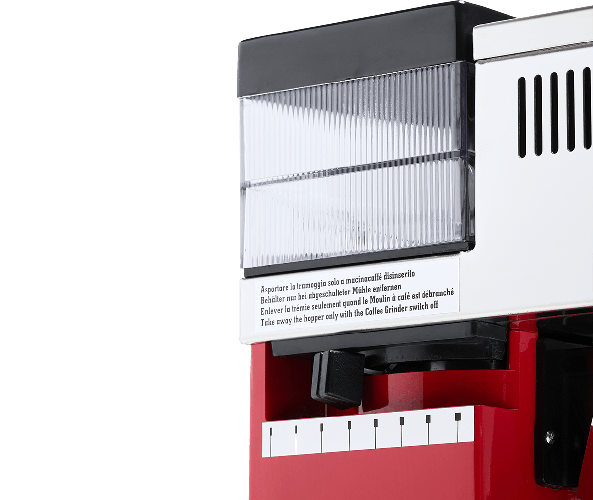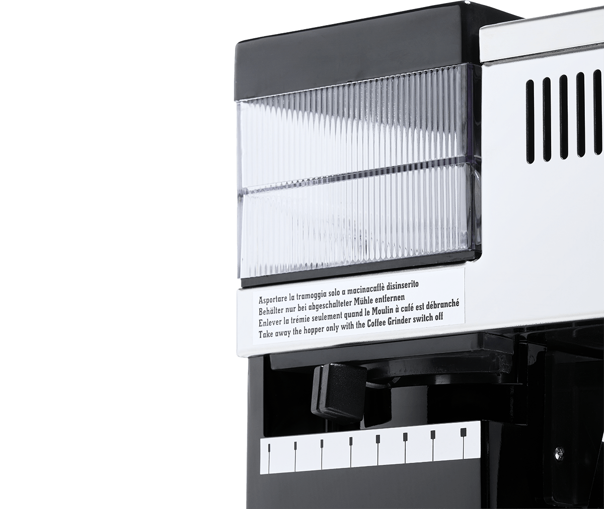 Molinillo: Molinillo integrado con discos planos de 43 mm; ajuste gradual de molienda; perilla de dosificación