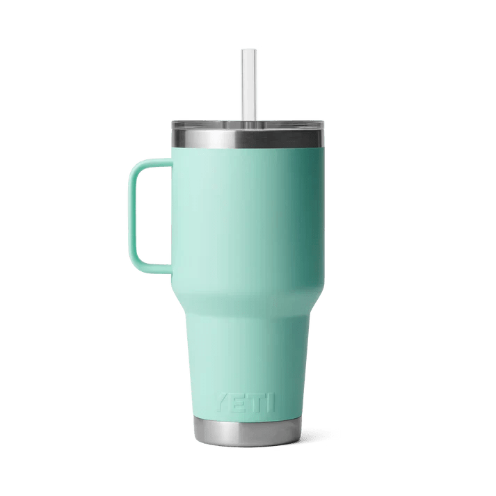 La taza con pajita YETI Rambler de 1 litro en color espuma de mar es la taza perfecta para aquellos que quieren bebidas heladas durante todo el día, pase lo que pase. Acerca de Ya sea que estés en una aventura o en casa, la taza está equipada con una pajita y una tapa reutilizables que mantienen tu bebida segura y sin derrames.
