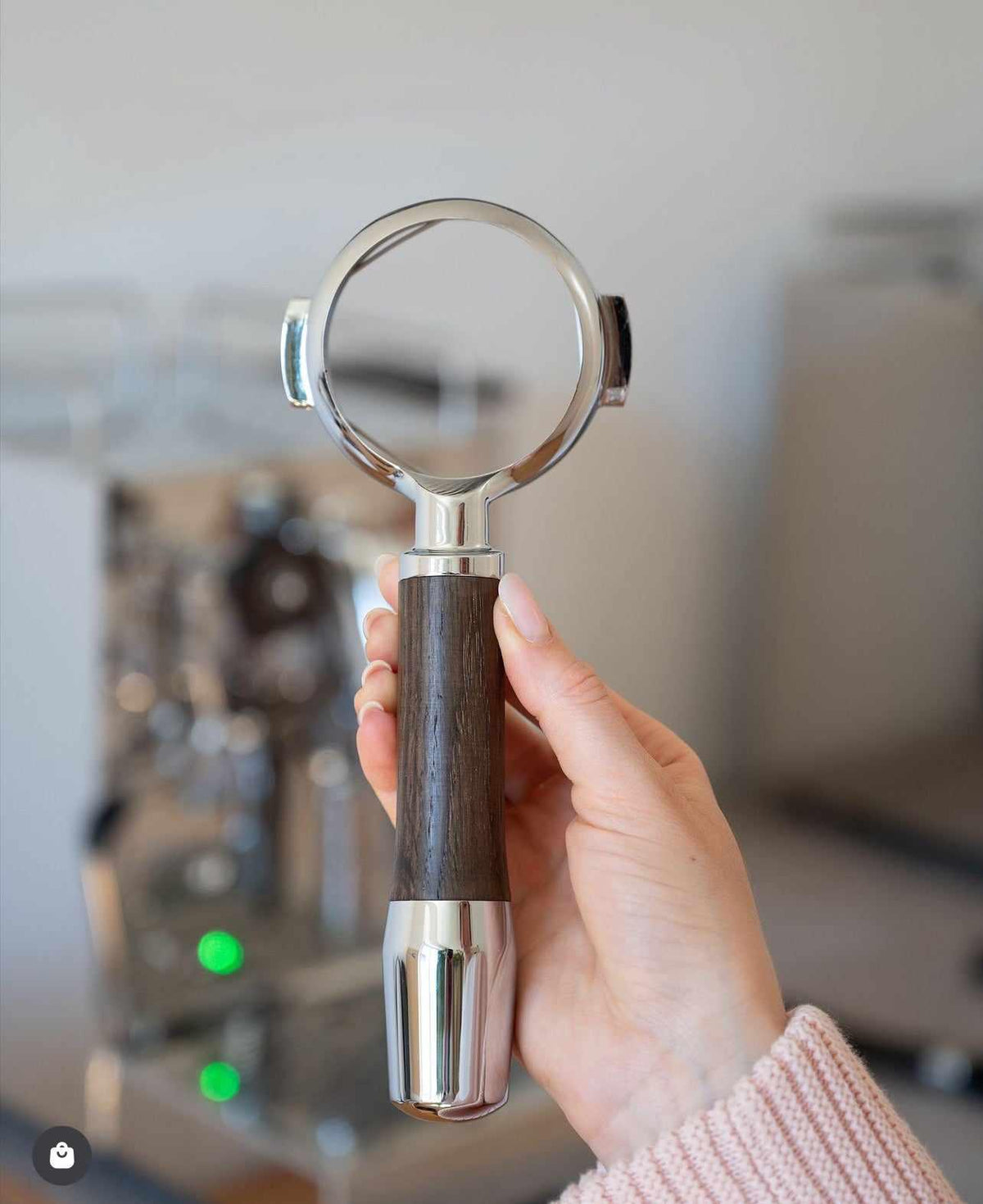 Nuestro mango con el diseño "Elegante" viene con cabezales portafiltros originales de ECM, mientras que todos los demás portafiltros tienen cabezales de acero inoxidable. Cada día, nuestro mango ofrece una experiencia táctil excepcional. Nuestra madera se trata a mano con aceite duro orgánico, para preservar la sensación natural de la madera.
